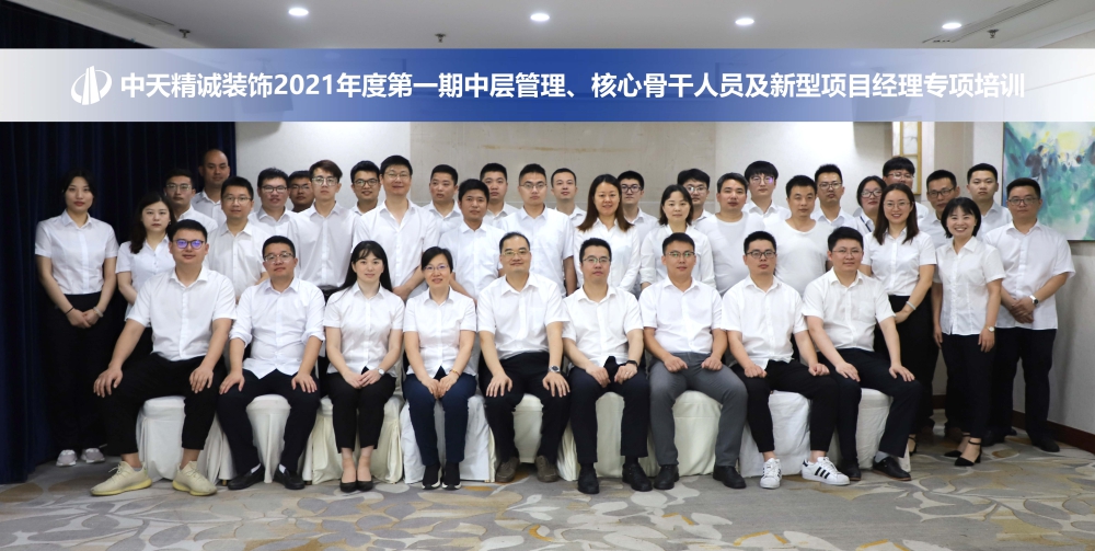 為加快公司人才梯隊建設,加速新型項目經理隊伍儲備,提升中層管理、核心骨干及新型項目經理管理水平,中天精誠裝飾于5月15日-16日舉辦2021年度第一期中層管理、核心骨干及新型項目經理專項培訓,共計46人參加。