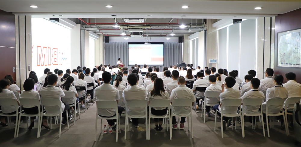 會議在昂揚的《中天之歌》后拉開帷幕。會上,精誠裝飾副總經理潘曉忠、精誠裝飾總工程師王剛、精誠裝飾總經理助理兼財務負責人陳宇英、綜合管理部副經理龐濤分別圍繞市場經營、技術進步、財務管理、人事制度作詳細宣貫、解讀及匯報。隨后,項目管理中心副經理陳偉偉對住宅精裝類、公建類項目上半年工程大檢查結果進行通報反饋,并對項目管理標準化進行宣貫。
