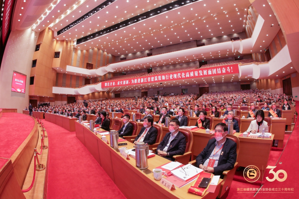 11月13日下午,浙江省建筑裝飾行業協會第七屆一次會員大會、裝飾行業高質量創新發展大會暨協會成立三十周年紀念大會在浙江省人民大會堂隆重召開。浙江省第十屆人大常委會副主任、省人民政府原副省長葉榮寶,浙江省第十二屆人大常委會副主任、省人民政府原副省長茅臨生,浙江省住房和城鄉建設廳黨組書記、廳長應柏平等政府領導,中國建筑裝飾協會、省建筑裝飾行業協會等重要領導出席大會。